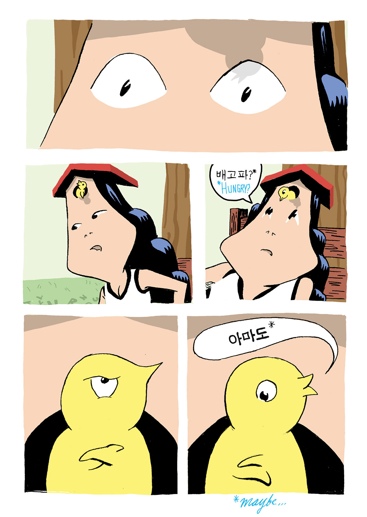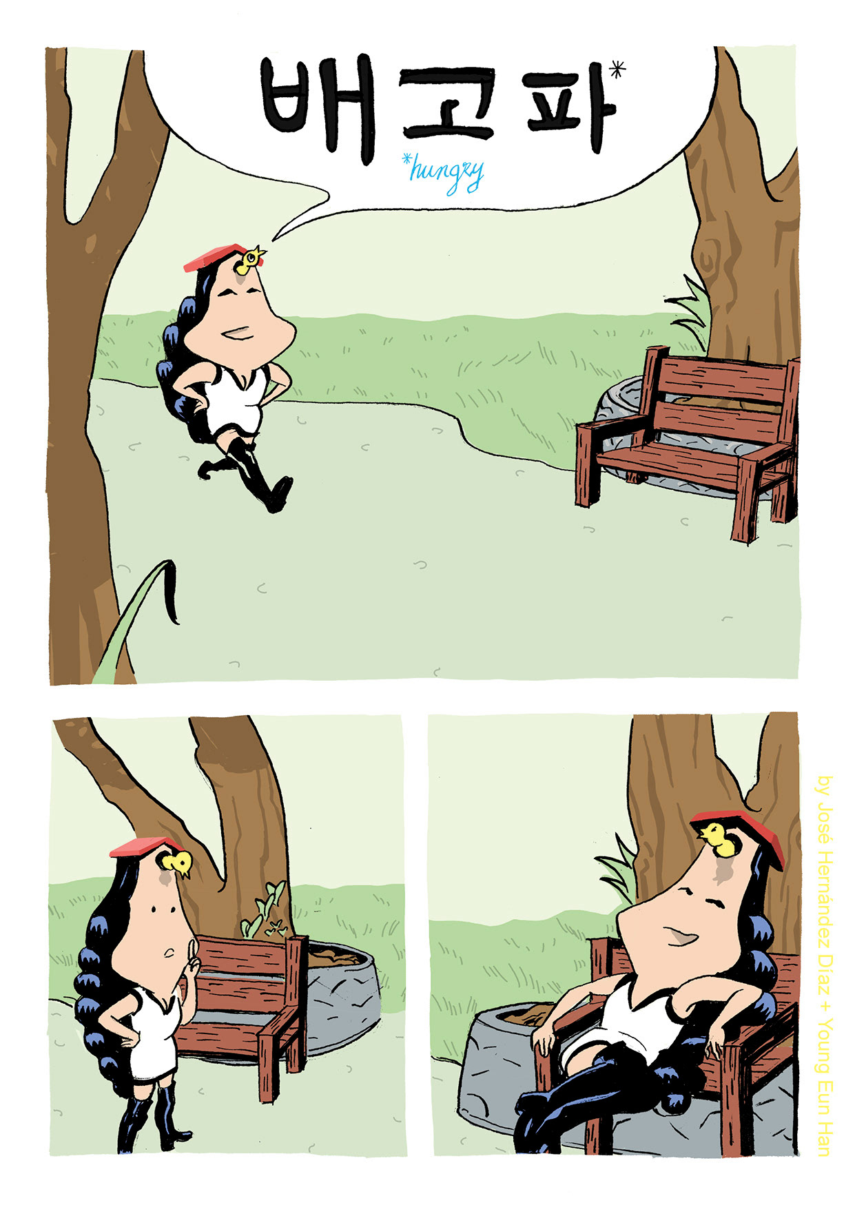 백 고파 (Baegopa/Hungry), a 10-page bilingual comic collaboration featuring Young Eun Han's character The Queen, circa 2017.
